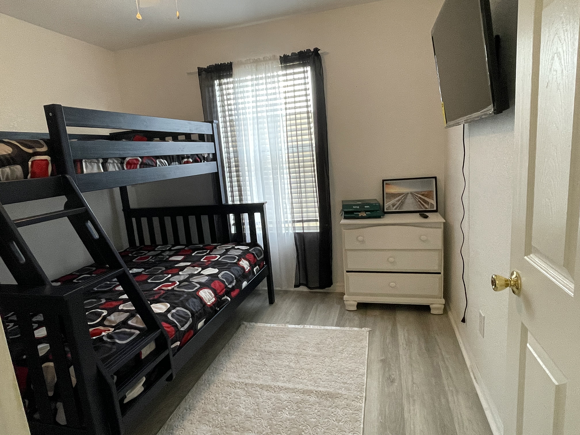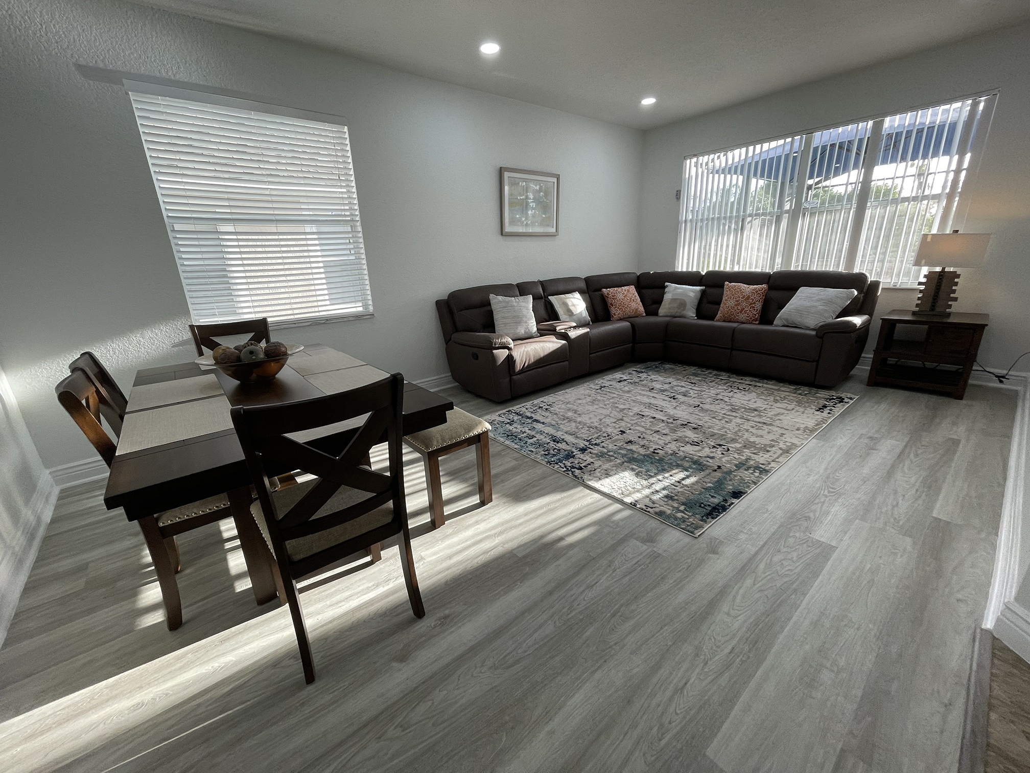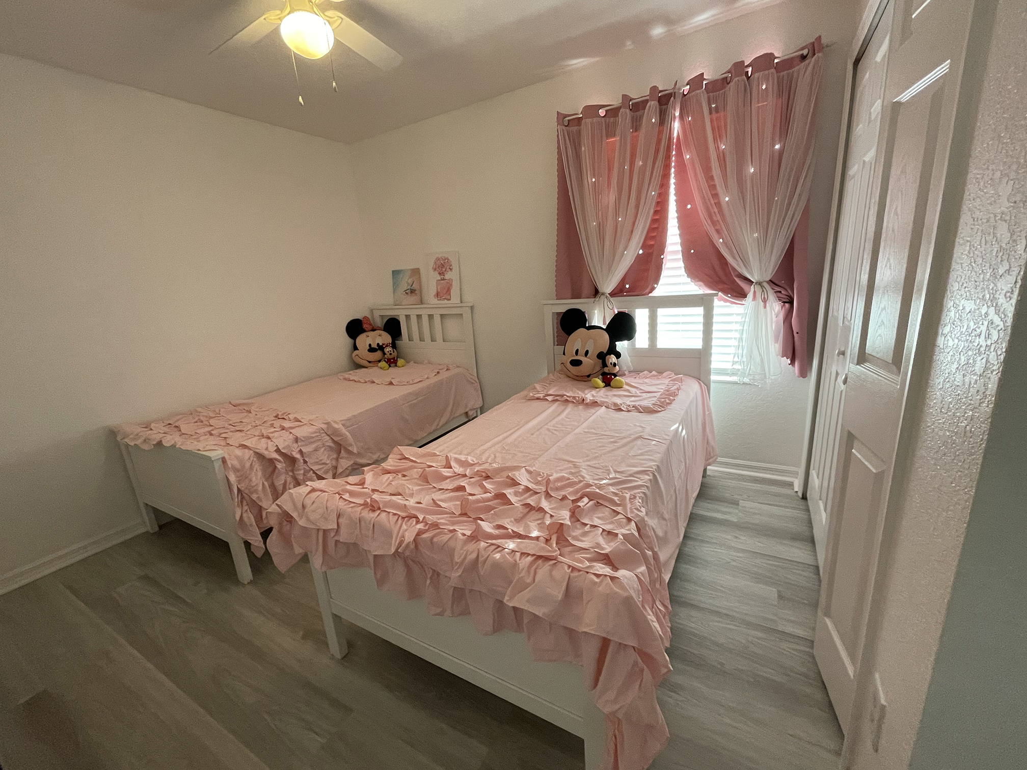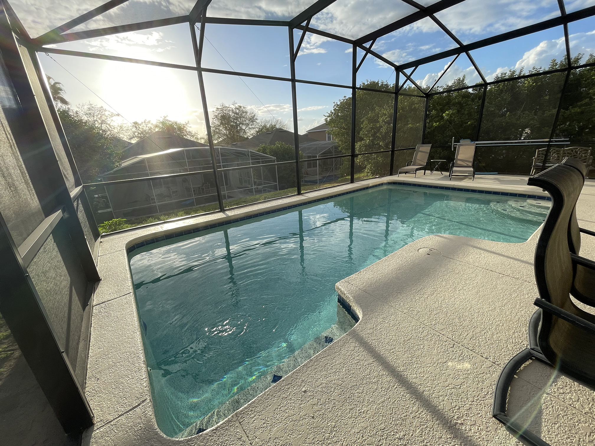 and is equipped with a range of bed sizes and a crib for all families and groups. It comes with a private pool , fully equipped kitchen, dining area, living room, pool table and games, and in-master jacuzzi tub! It’s only minutes from Disney, Old Town, shopping place and is located on a quiet golf course!